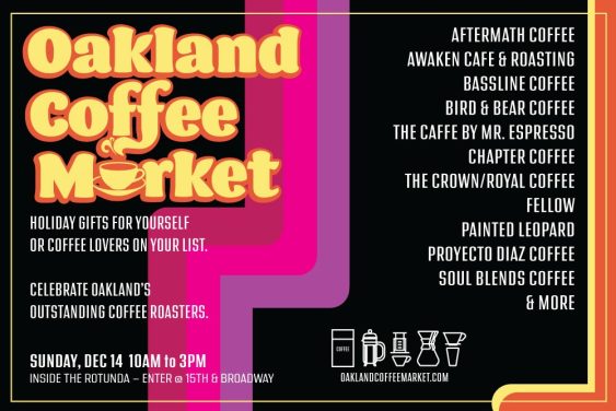 Find coffee gifts for yourself or the coffee lovers on your list! The 2025 Oakland Coffee Holiday Market will take place on Sunday, December 14th from 10am to 3pm inside the historic Rotunda Building. The event is a celebration of Oakland’s world-class coffee community – another facet of what makes Oakland the #1 Best Food City two years in a row! The holiday gift market will feature coffee beans, coffee beverages, home brew gear, and merch from twelve Oakland based coffee companies.