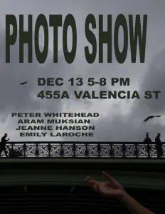 4 photographers will be showing work at Studio Valencia on December 13 5-8pm and December 14 afternoon
